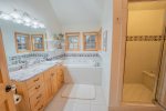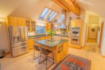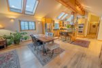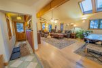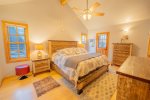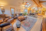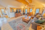 A spacious and well-equipped kitchen opens into a lovely dining area, then a cozy family room, complete with gas fireplace, smart TV, family-style games, and room to lounge, or even sleep in the oversized-Queen Sleeper Sofa. Radiant in-floor heat throughout means every room is toasty. Each bedroom boasts a king size bed, a high ceiling with fan, great light, and it’s own deck. Amenities galore.